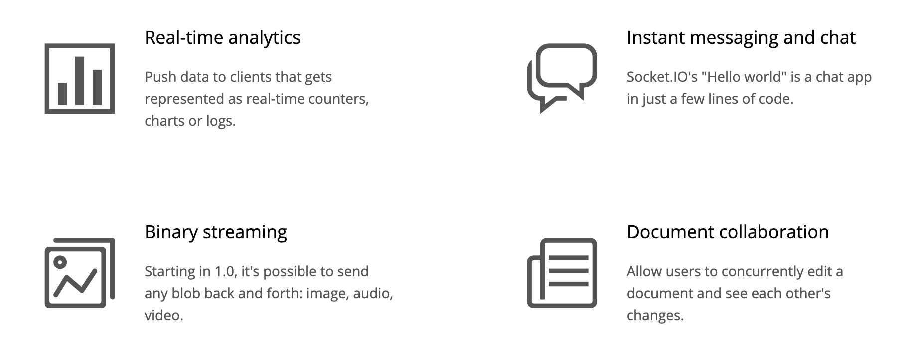 socket.io의 응용 범위 그림과 같이, 실시간 분석이나 채팅과 같은 기능들에 사용된다.