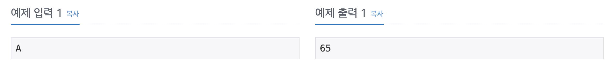 이 문제 덕분에 다른 문제에서 아스키 코드를 요구할 때 간단하게 풀 수 있을 것 같다.